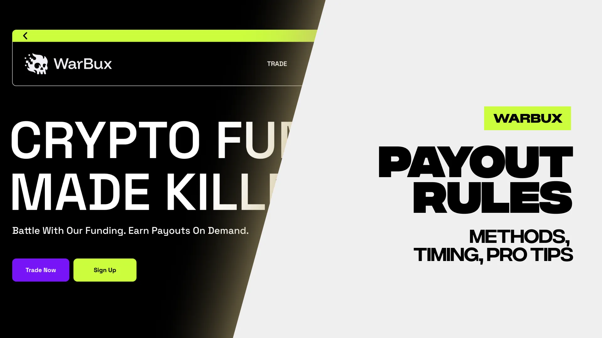 WarBux uses a simple, on-demand payout structure built around stablecoin withdrawals. There are no fixed cycles, no end-of-month routines, and no minimum trading day requirements buried in the fine print. You hit profit, you’re inside the rules, you click withdraw — that’s the model.